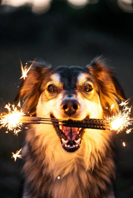En het zijn de vaders die het vuurwerk in hun handen hebben. Ja, dat is veiliger dan om die kinderen van tien een cobra in handen te stoppen, maar toch begrijp ik het niet, want ik hoor de kinderen jengelen: “Pap, mag ik… Mag ik… ik zal heel voorzichtig doen.’’ En terwijl ik de bibberhond steviger tegen me aandruk, hoor ik die vader zeggen: “We wachten even op deze mijnheer…’’ En vervolgens geeft hij iets vuurwerkachtigs aan zijn zoon.